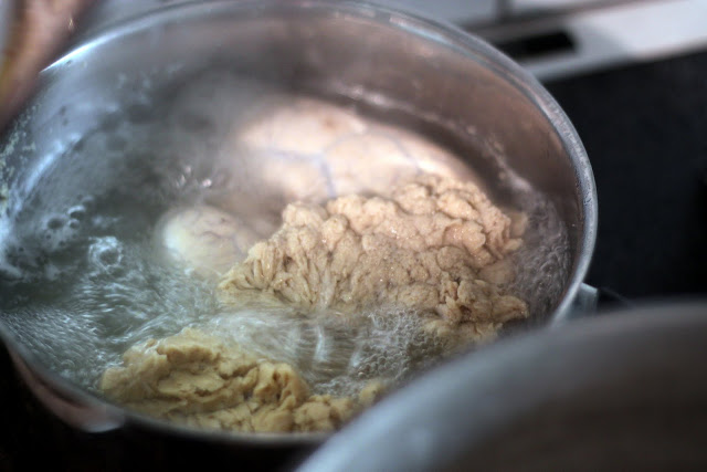 Den renskede torskelevra skal kokes med hakket løk, i fiskekraft.